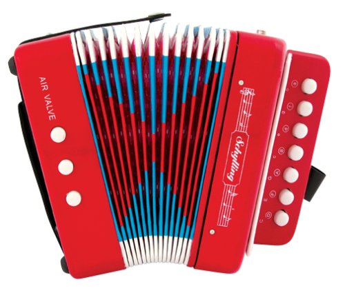 Your child probably doesn't know Lawrence Welk or the accordion he toted around so famously for years. That should work in the favor of this sturdy, enjoyable instrument. Compact and well built, this starter instrument is a great introduction to the accordion--or just a lot of ephemeral fun. The accordion fits nicely into the palms of an adult's hands, but isn't too unwieldy for its target audience. The number of keys are minimized for ease of use and simplicity, but it's still possible to crank out a complex favorite such as "Yankee Doodle Dandy" (a brief "basic instructions" leaflet is enclosed) only 10 minutes after the instrument's out of the box. --Keith Simanton
